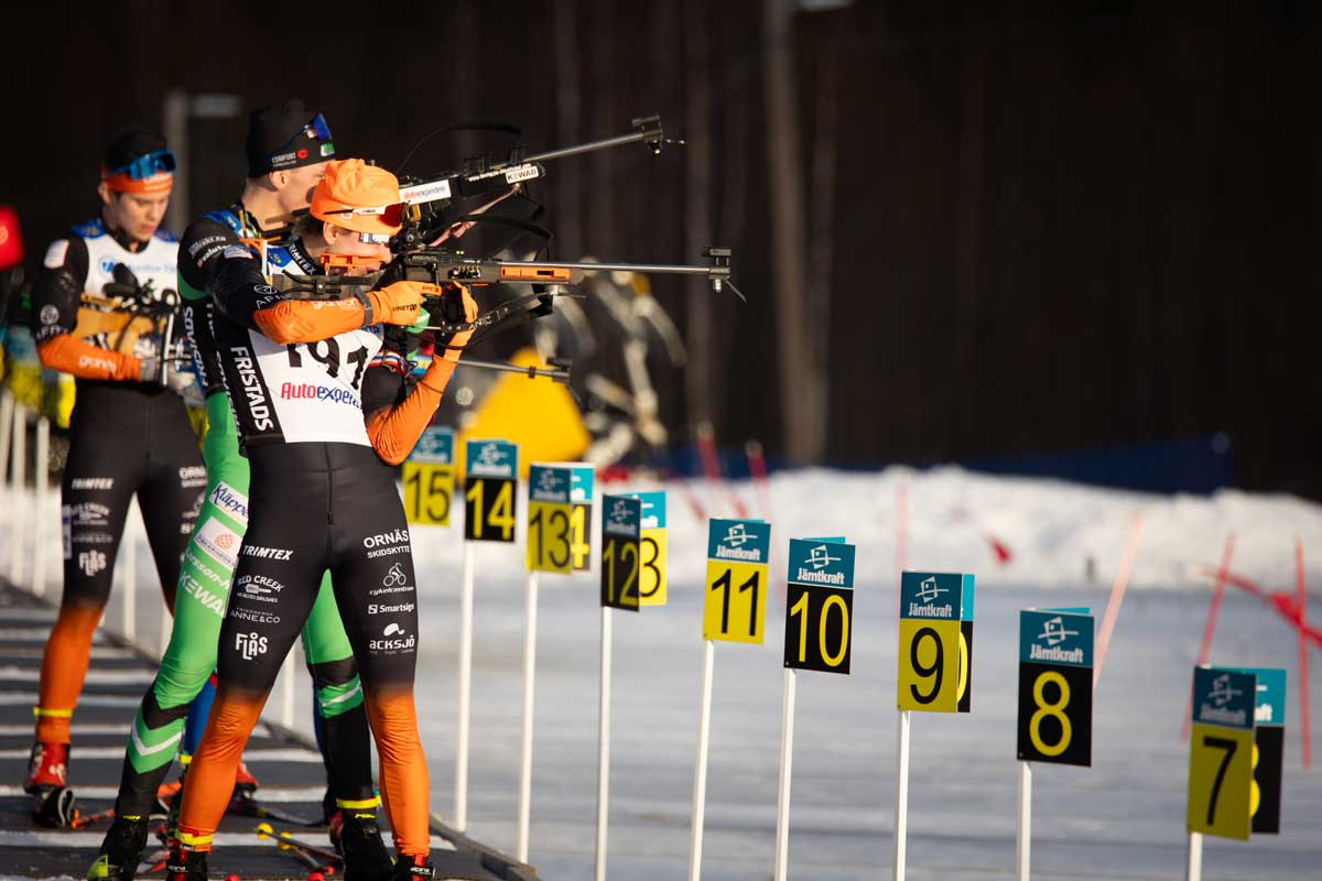 Helmer Jöhnemark från Ornäs skidskytte på skjutvallen under JSM i år.